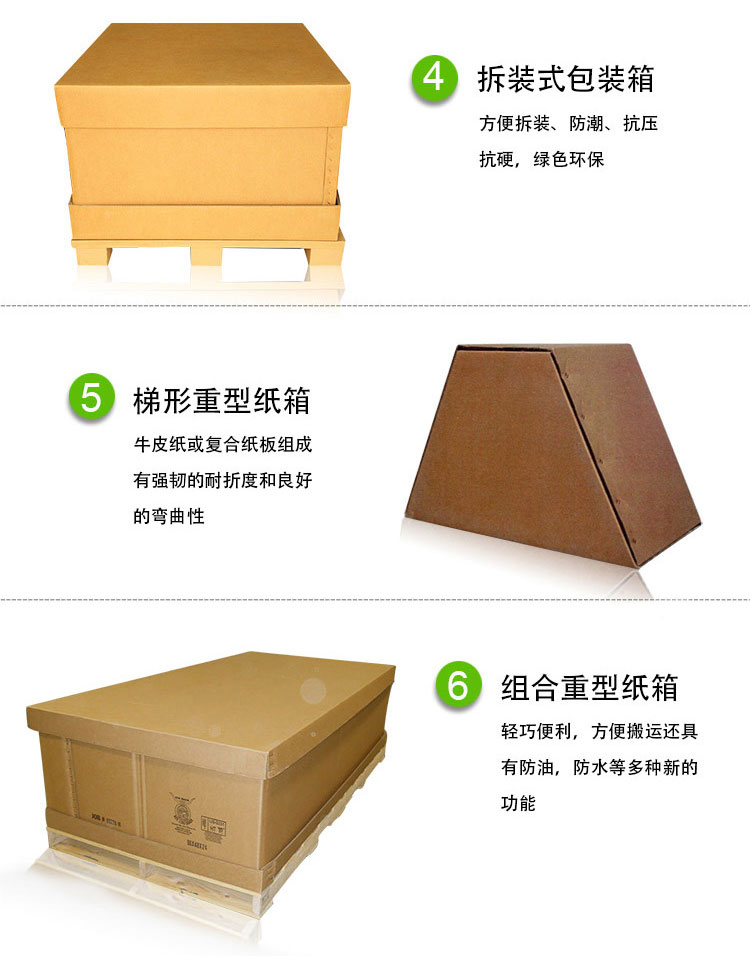 八、3A重型紙箱 重型包裝紙箱適用于放置易碎、易壓損、易變形精細器件、重型等貨品,可與紙托盤連在一起配套出產(chǎn),這樣更有用地避免貨品移位,更易于裝貨柜。